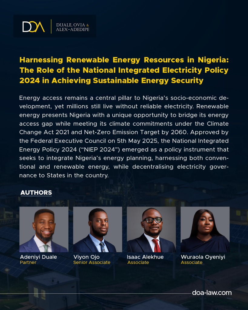 In our latest article, Adeniyi Duale, Viyon Ojo, Isaac Alekhue, and Wuraola Oyeniyi examine how NIEP 2024 integrates conventional and renewable energy, decentralises governance, and strengthens energy security for sustainable growth.